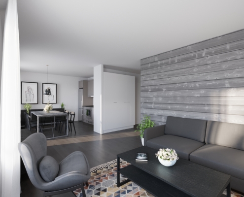 Taloyhtiön isoimmassa 64 neliön lomahuoneistossa viihtyy useampikin lomailija.