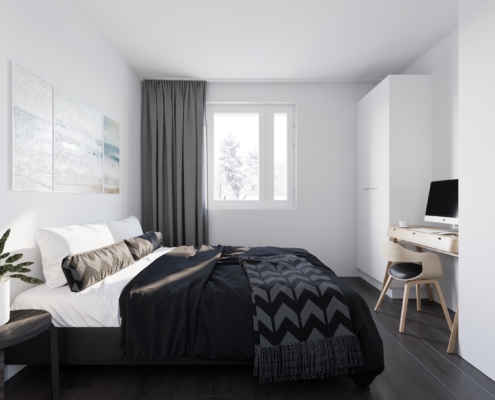 Huoneisto majoittaa 4+2 lomailijaa: huoneistossa on kaksi hyvän kokoista makuuhuonetta säilytystiloineen sekä olohuoneeseen mahtuu levitettävä sohva.